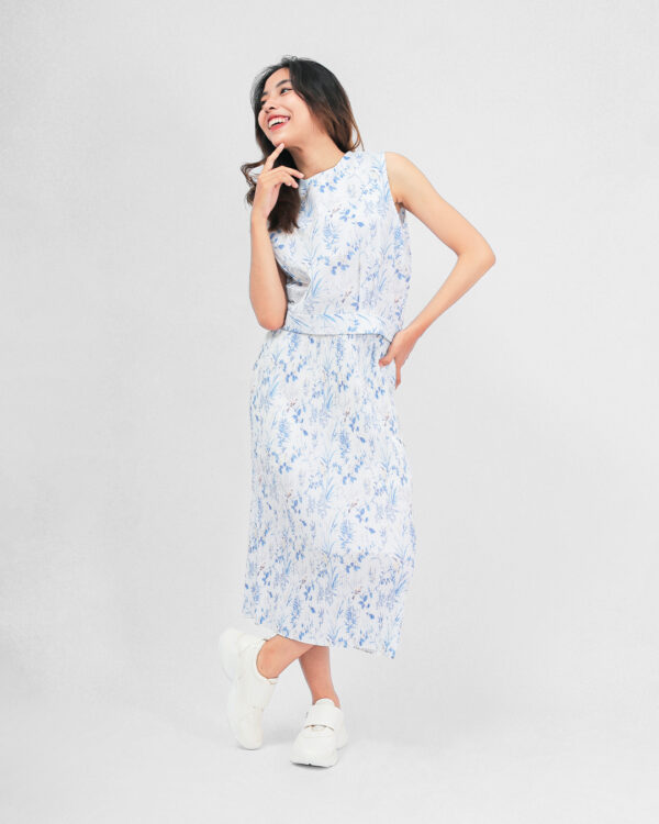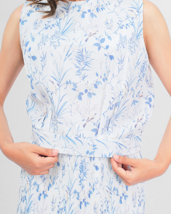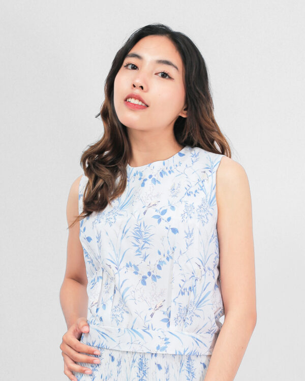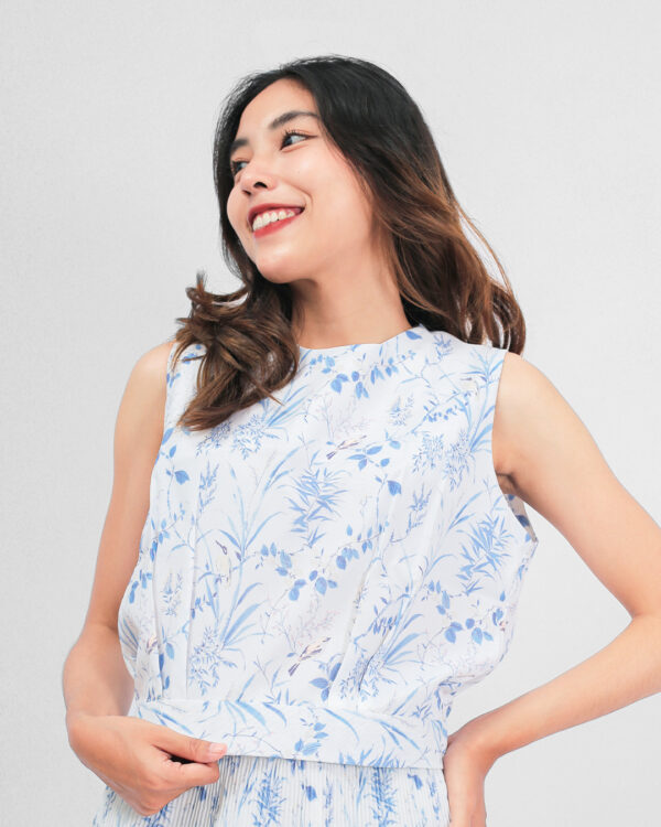 Sleeveless top dengan potongan sederhana dan memiliki detail ban pada pinggang. Adeline top dirancang dengan material bermotif floral yang nyaman dan lembut.