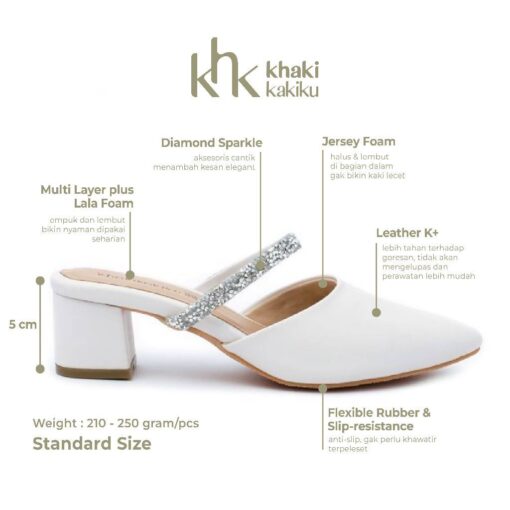 Ailis heels memiliki look yang minimalist dan feminine dirancang dengan ujung upper yang cenderung lancip sehingga membuat look-mu lebih anggun. Ailis heels dilengkapi dengan diamond sparkle strap yang memberikan aksen elegant. Ailis heels sangat cocok digunakan pada acara formal.