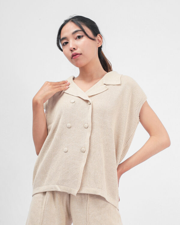 Knit top yang memiliki look semi formal – casual dirancang dengan material knit yang lembut dan stretchy. Ivy top memiliki 4 varian warna dan detail kancing yang cukup banyak sehingga memiliki tampilan yang unik.