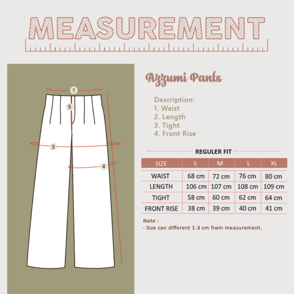 High waist pants yang dirancang dengan potongan regular dan sederhana. Azzumi pants dapat dipakai sehari-hari untuk acara formal maupun casual.